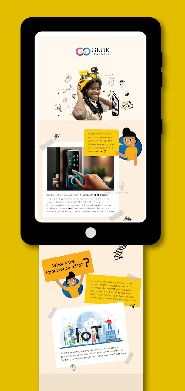 This section is a collection of characters and books which were designed by me when I was working with an Ed-Tech Company named “Grok Learning”. We as designers, used to study the complex engineering concepts designed for school students from grade 5th to 10th; and come up with concepts and stories. In a way the ideas and designs used to bridge the communication gap in a very simplified yet fun way.